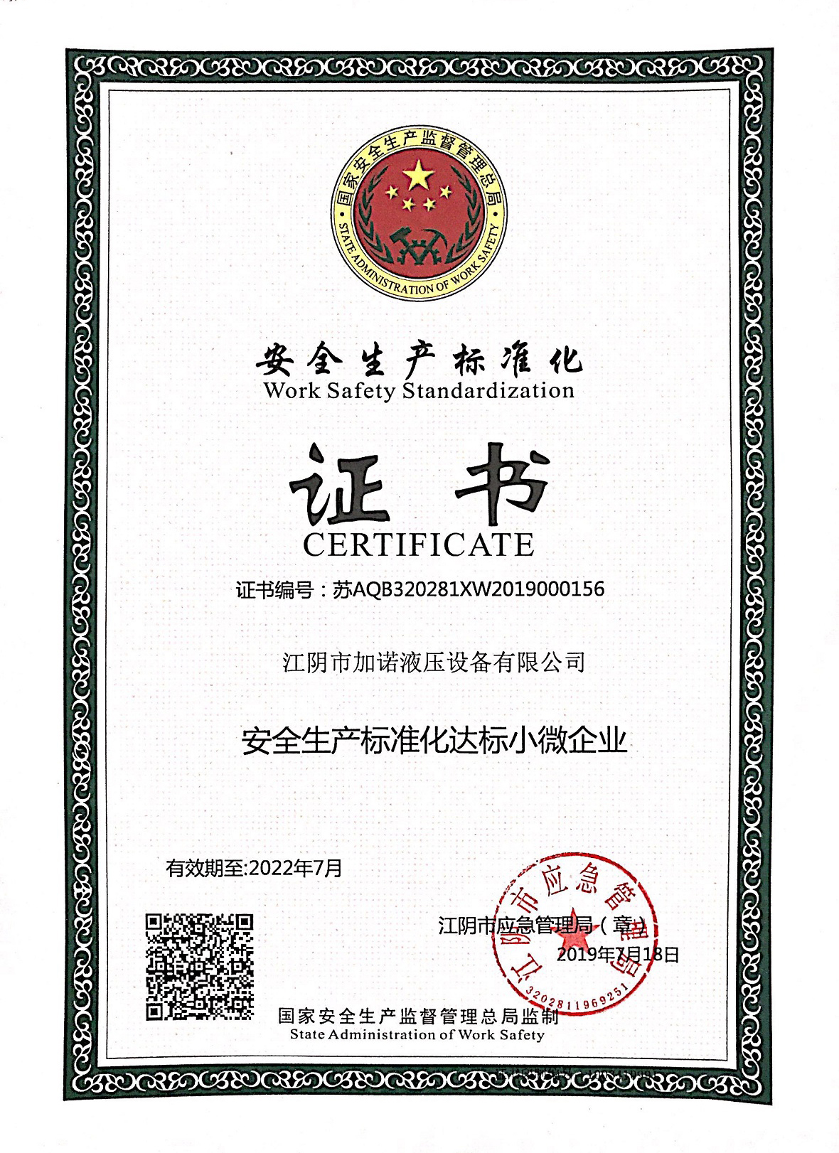安全生产标准化证书